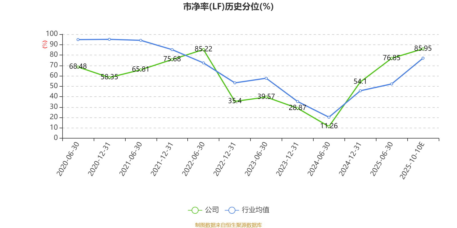 市盈率、市净率为负时魔投网,不显示当期分位数,会导致折线图中断。