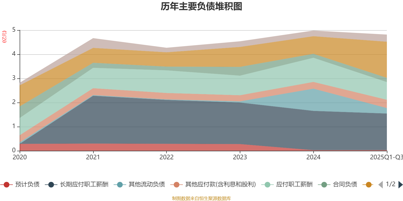 负债重大变化方面,截至2025年三季度末,公司应付票据及应付账款较上年末增加105.84%,占公司总资产比重上升1.84个百分点;其他流动负债较上年末减少75.58%,占公司总资产比重下降1.81个百分点;应付职工薪酬较上年末减少26.77%,占公司总资产比重下降0.76个百分点;长期应付职工薪酬较上年末减少6.83%,占公司总资产比重下降0.42个百分点。